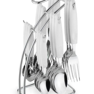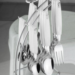 - Consisting of 18 pieces including six units of Small Spoon, Table Spoon & Fork each along with the stand, this set is ideal for daily use for your family or for special guests.