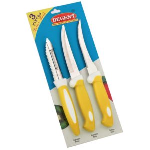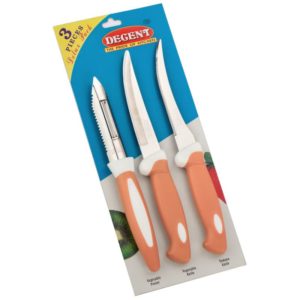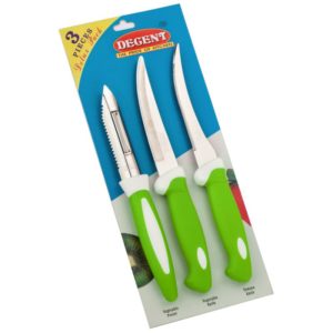 - Featuring soft-grip handles, these knives provide a highly ergonomic grip that leads to stress-free cutting. The edges on the knives make it easy to cut through fruits, and vegetables with equal ease.